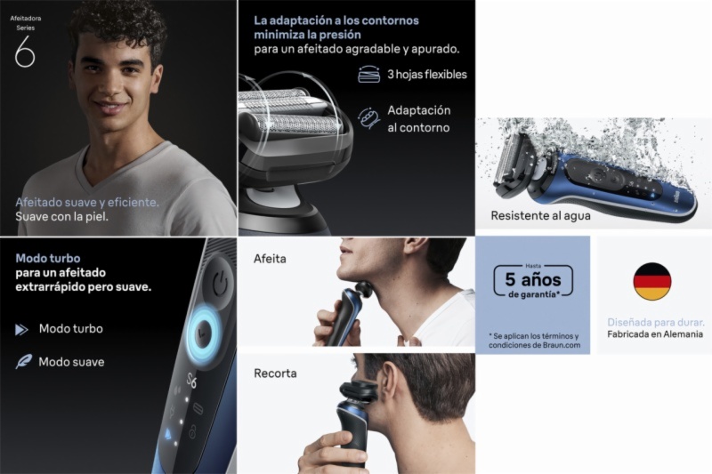 • Suave y eficiente. braun series 6 ofrece un afeitado cómodo y eficiente suave con la piel. eficiente incluso en barbas duras.