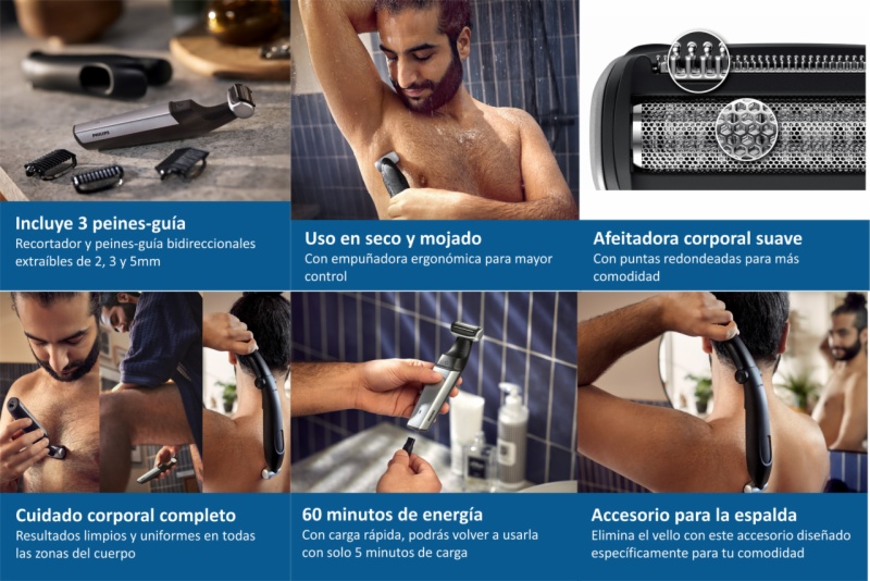 - Ahora puedes arreglarte con confianza todo el cuerpo con un solo aparato. este se de arreglo personal corporal para hombres de philips recorta el vello en 3 longitudes diferentes para ofrecer resultados limpios y uniformes en la espalda, los hombros, el pecho, los abdominales, las axilas, los brazos, las ingles y las piernas.