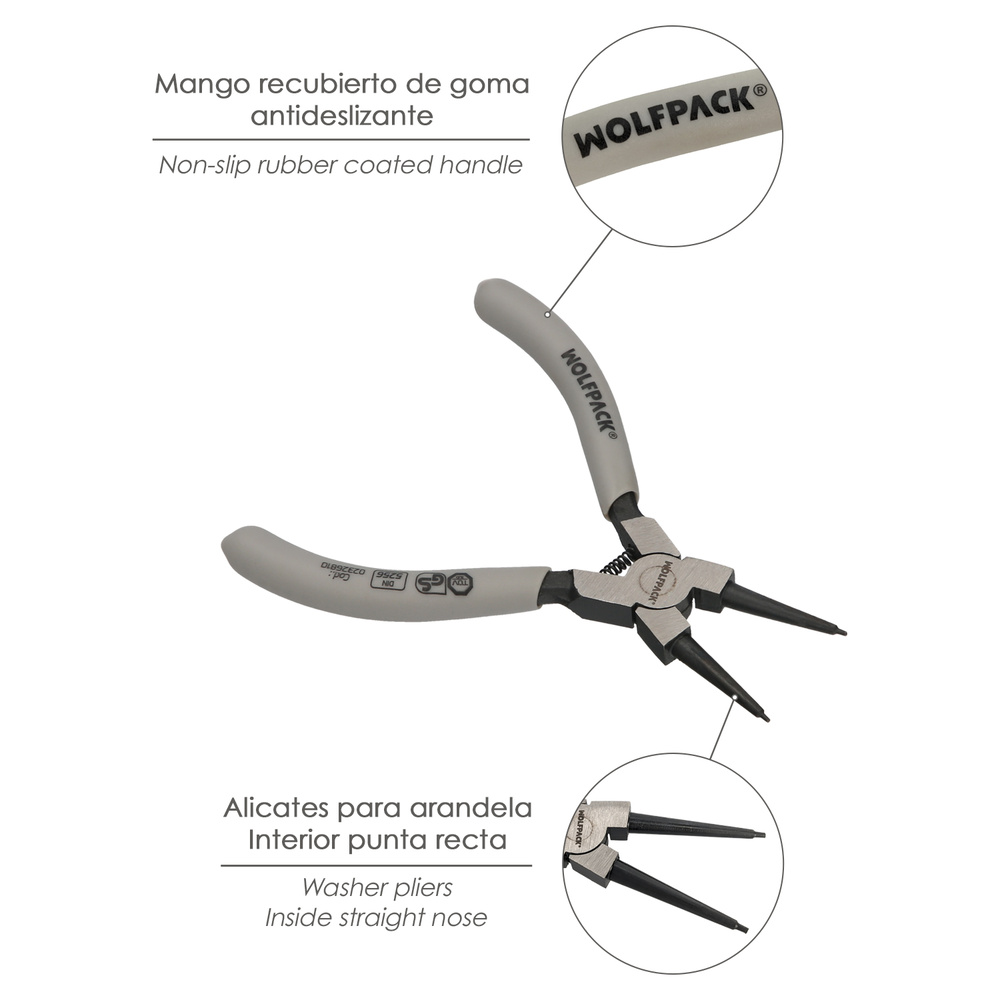 Alicates Arandelas Interiores Recto 125 mm. Acero Din 5256