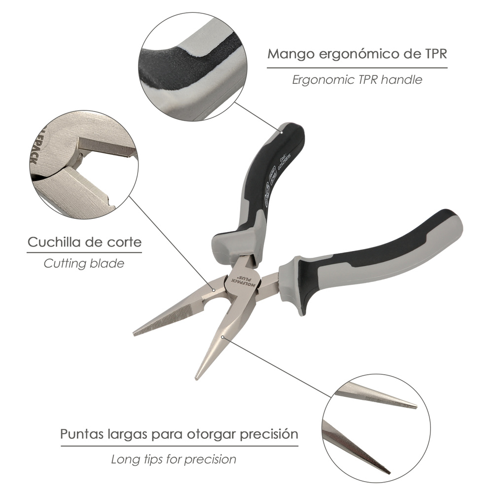 Alicates Boca Recta 150 mm. Acero Cromo Vanadio DIN-ISO 5745 Alicates Punta Recta, Alicates Boca Larga,
