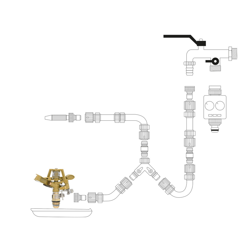 – Alcance hasta 15 metros. Radio de riego regulable desde 25º hasta 360º.
