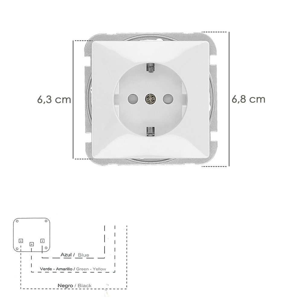 – ArtÃculo conocido como enchufe, base, base schuko, enchufe, toma corriente, base sin TT, enchufes, mecanismo superficie, enchufe empotrar, toma corriente schuko, etc.