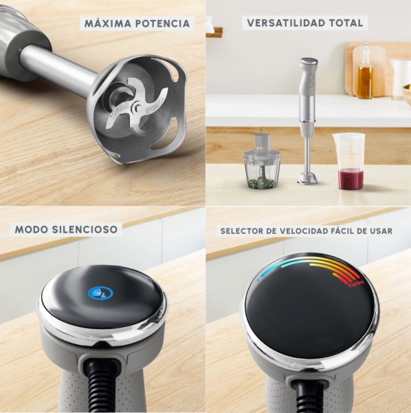 - Quickchef+, batidora de mano, cuchillas con tecnologìa powelix, 20 velocidades, 2 en 1, gris