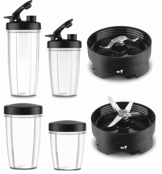 - Accesorios 6-en-1: vaso de 0,8l, vaso de 0,5l, moledor, tapa para bebida deportiva y tapa estándar