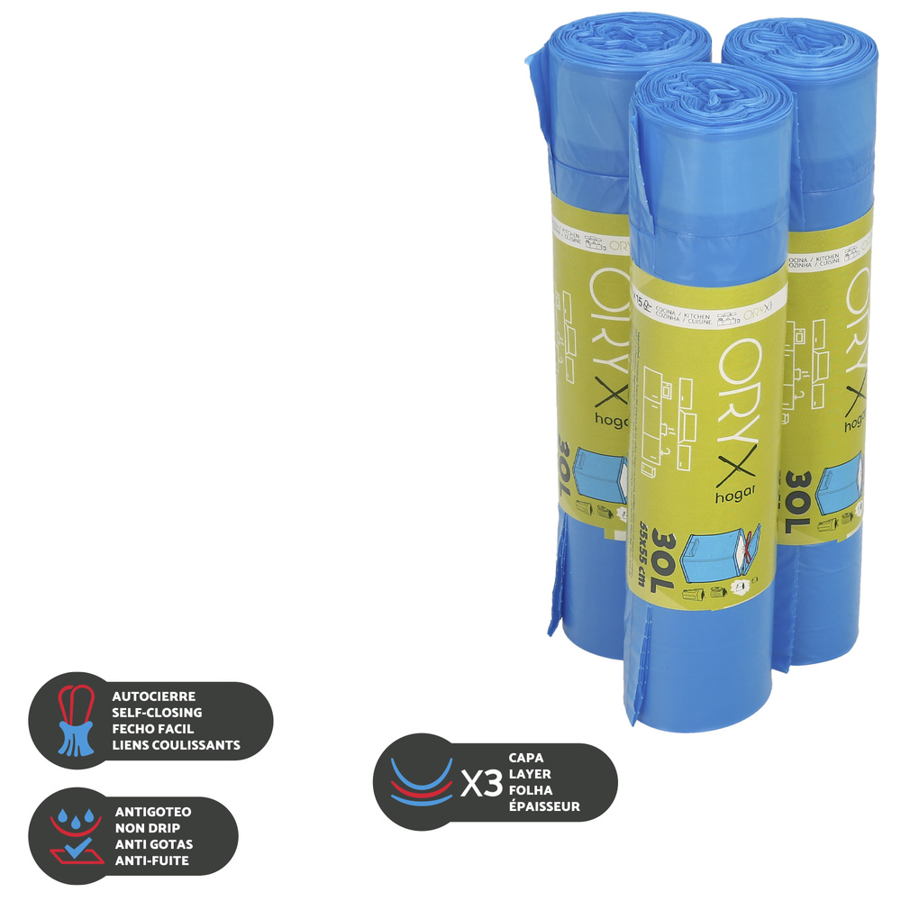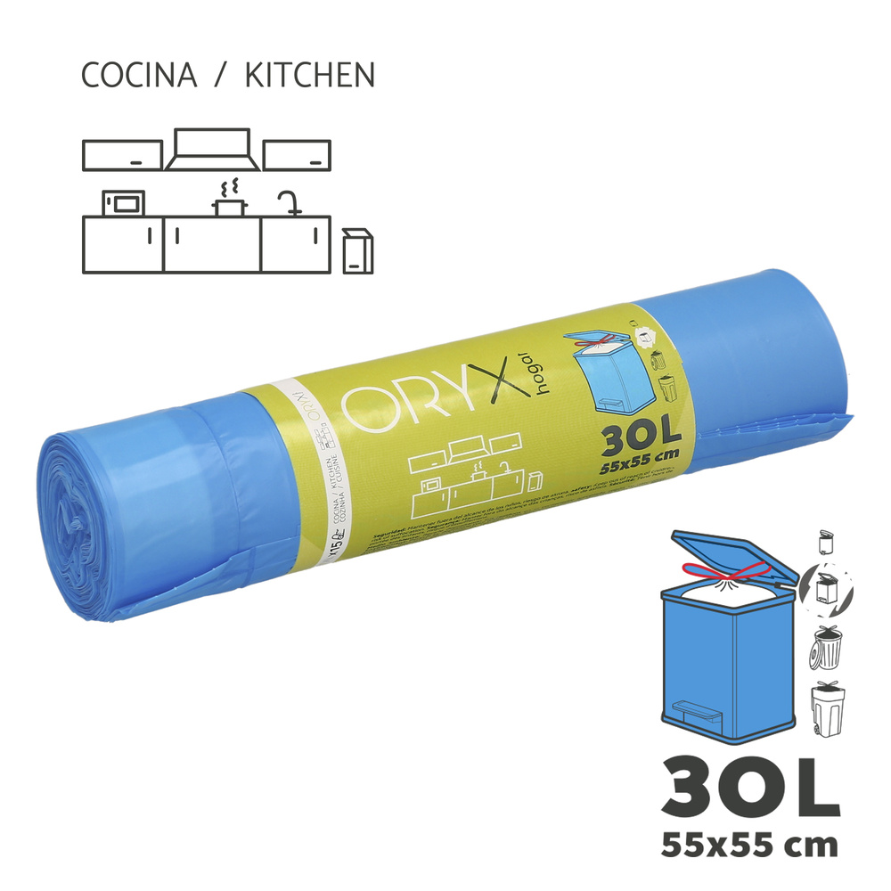 – Cada bolsa tiene una capacidad de 30 litros y unas medidas de 55×55 cm.