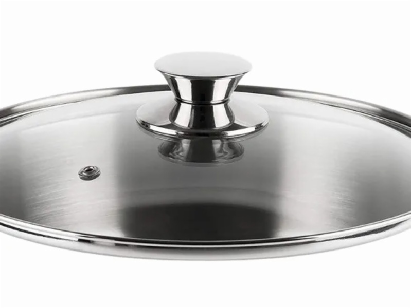 • Tapa de vidrio templado con pomo inoxidable y válvula de salida de vapor para su seguridad