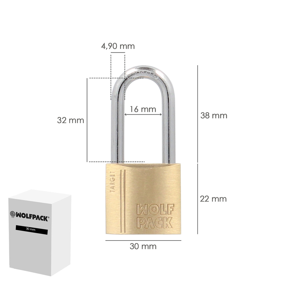Candado Laton Arco Largo 30 mm.