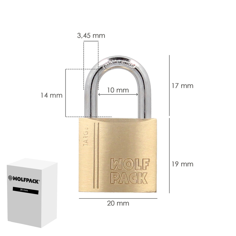 Candado Laton Arco Normal 20 mm. Serie Target. Arco Endurecido. Candado Maletas, Taquillas, Puertas