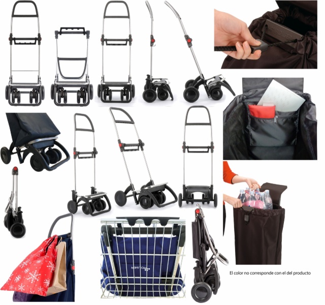 • Carro rolser plegable de aluminio de 2/4 ruedas, para evitar cargas innecesarias. 4lt incorpora en su diseño el sistema de ruedas giratorias. chasis con pieza de enganche adaptable al carro del súper.