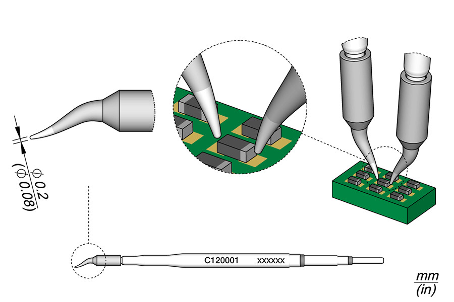 - Debido al tamaño de las puntas de los C210 estos cartuchos son perfectos para trabajar con SMD, bajo un microscopio, o con componentes convencionales.