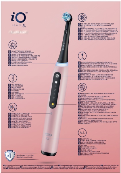 • El cepillo eléctrico io 5 incorpora la mejor tecnologìa de oral-b, que combina un cabezal redondo inspirado en los cepillos profesionales con filamentos microvibradores, para ofrecer una sensación de limpieza profesional en casa.