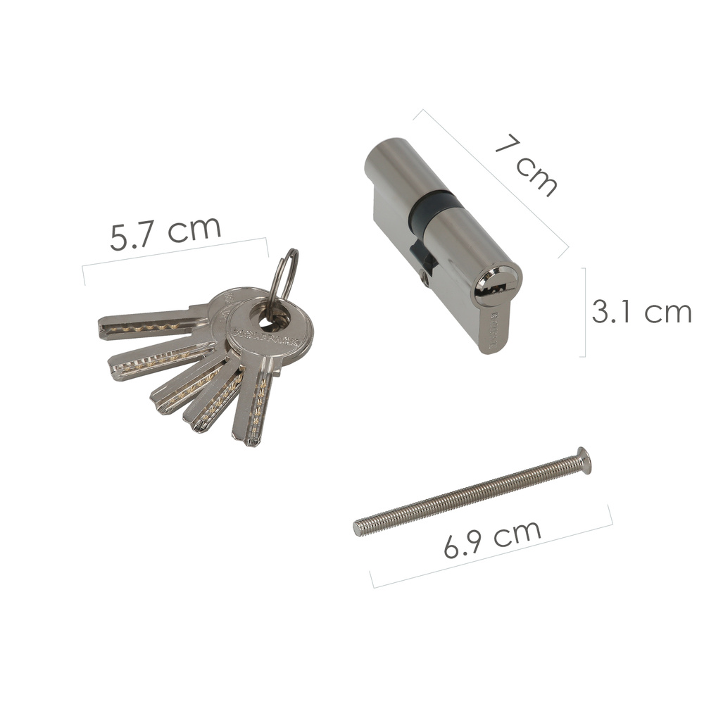 Cilindro Seguridad 35×35 mm/13,5 Leva Corta Niquelado Con 5 llaves