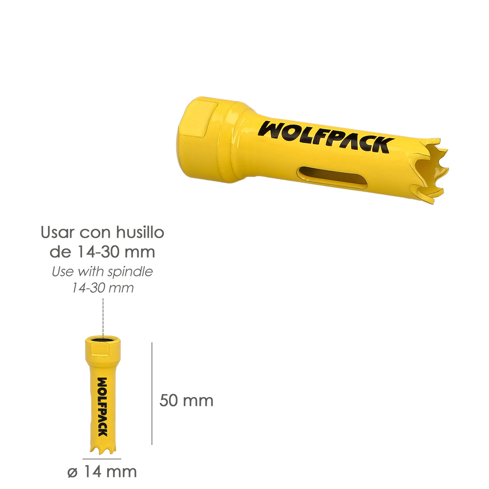 Corona Sierra Bimetal Ø 14 mm. Templado Termico, Base Reforzada. Corona Madera, Broca Agujeros Madera, Acero, Hierro, Plasticos