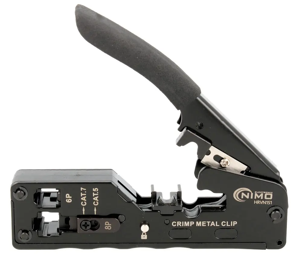Diseñada para crimpado de conectores modulares RJ-45 (UTP / STP 8P8C Cat.5 / Cat.6 / Cat6a / Cat.7), RJ12 (6P6C) y RJ11 (6P4C / 6P2C).