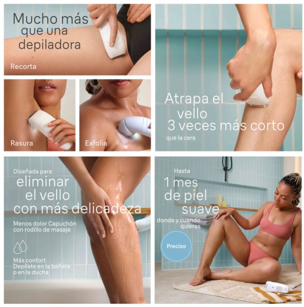 • Depìlate con tus propias normas: las depiladoras braun atrapan el vello que la cera no puede atrapar, no llevan productos quìmicos y no requieren esperar a que el vello vuelva a crecer