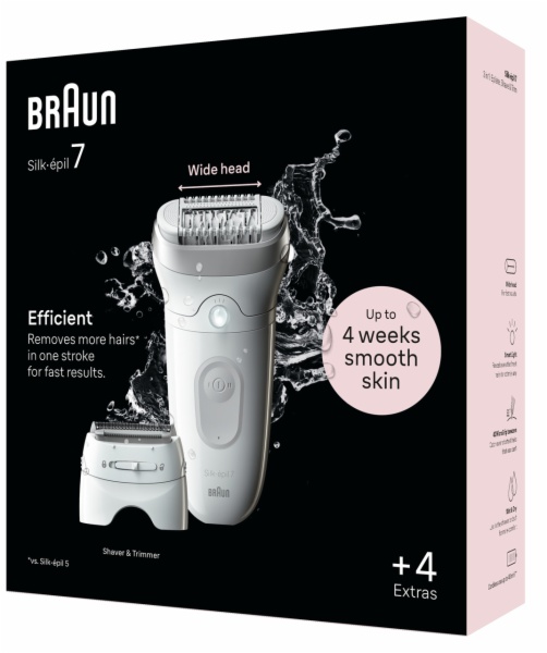 • Braun silk-épil 7, depiladora eléctrica para una eliminación del vello fácil, piel suave duradera, 7-041, blanca/plateada