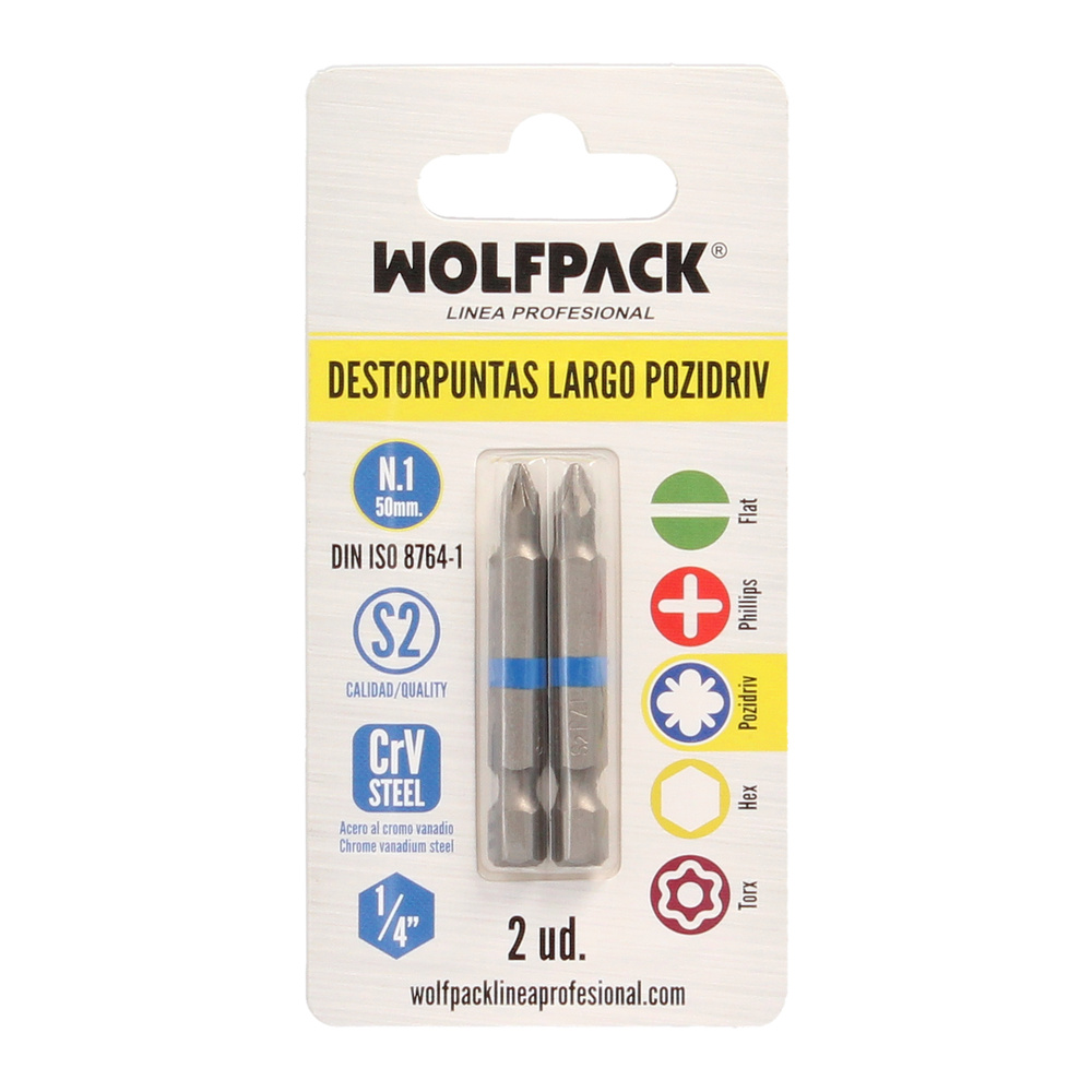 Destorpuntas Largo Pozidriv Nº 1 (2 Piezas) Acero S2 al Cromo Vanadio.