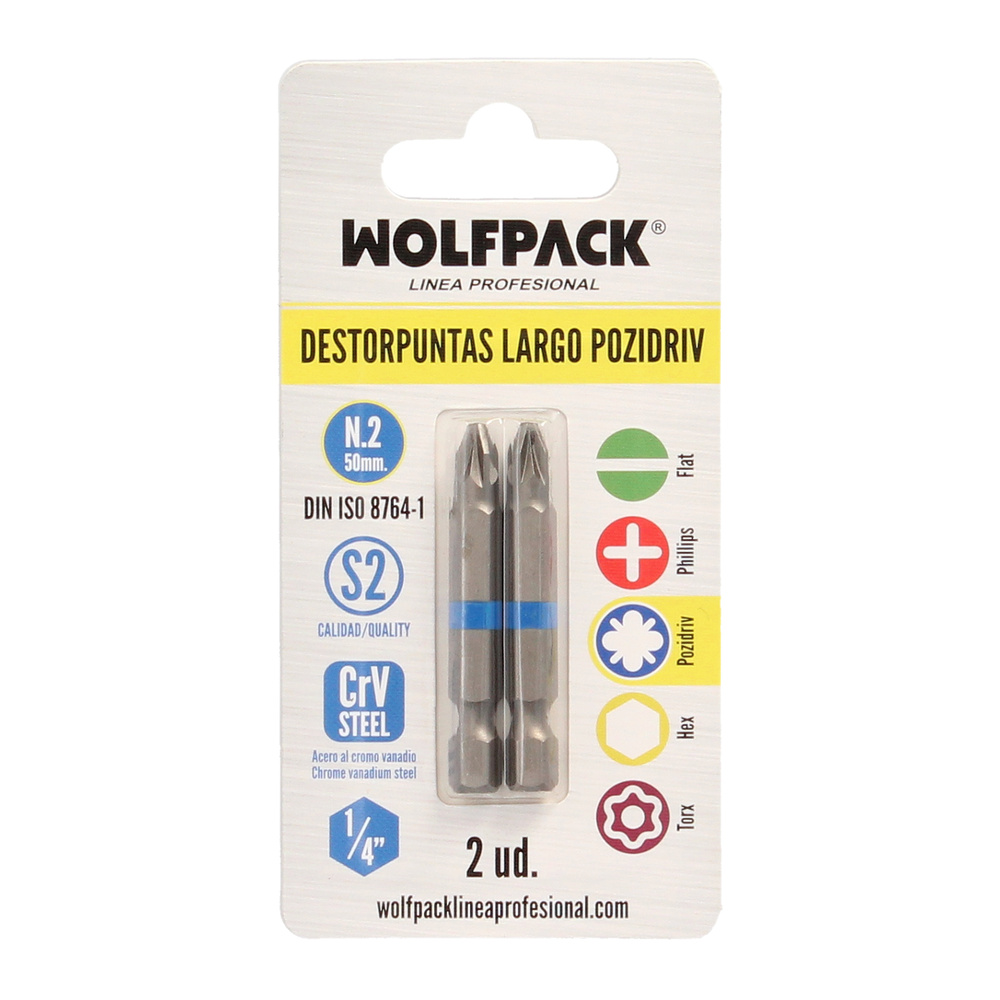 Destorpuntas Largo Pozidriv Nº 2 (2 Piezas) Acero S2 al Cromo Vanadio. Puntas Hexagonales, Destorpuntas,