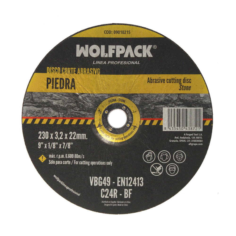 Disco Corte Abrasivo Piedra Plus Ø 230 x Ø 22 mm. Espesor 3,2 mm.
