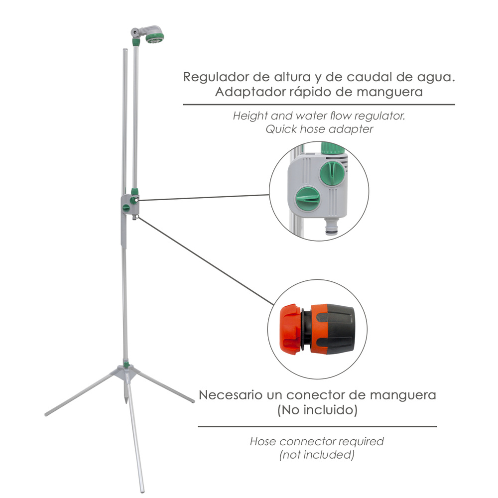 – Ajustable en altura mediante tuercas de fijación. Regulador de caudal.
