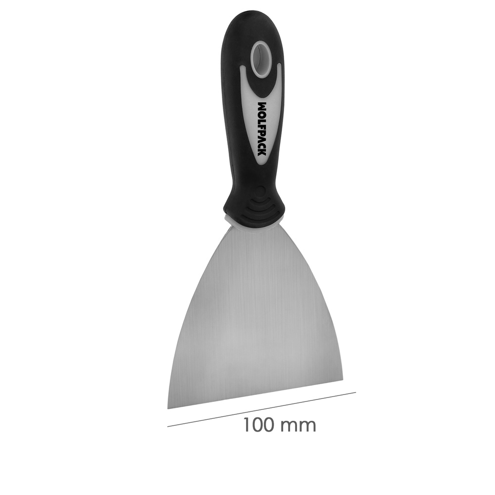 – Espatula fabricada en acero inoxidable de 100 mm. y mango ergonomico de goma.