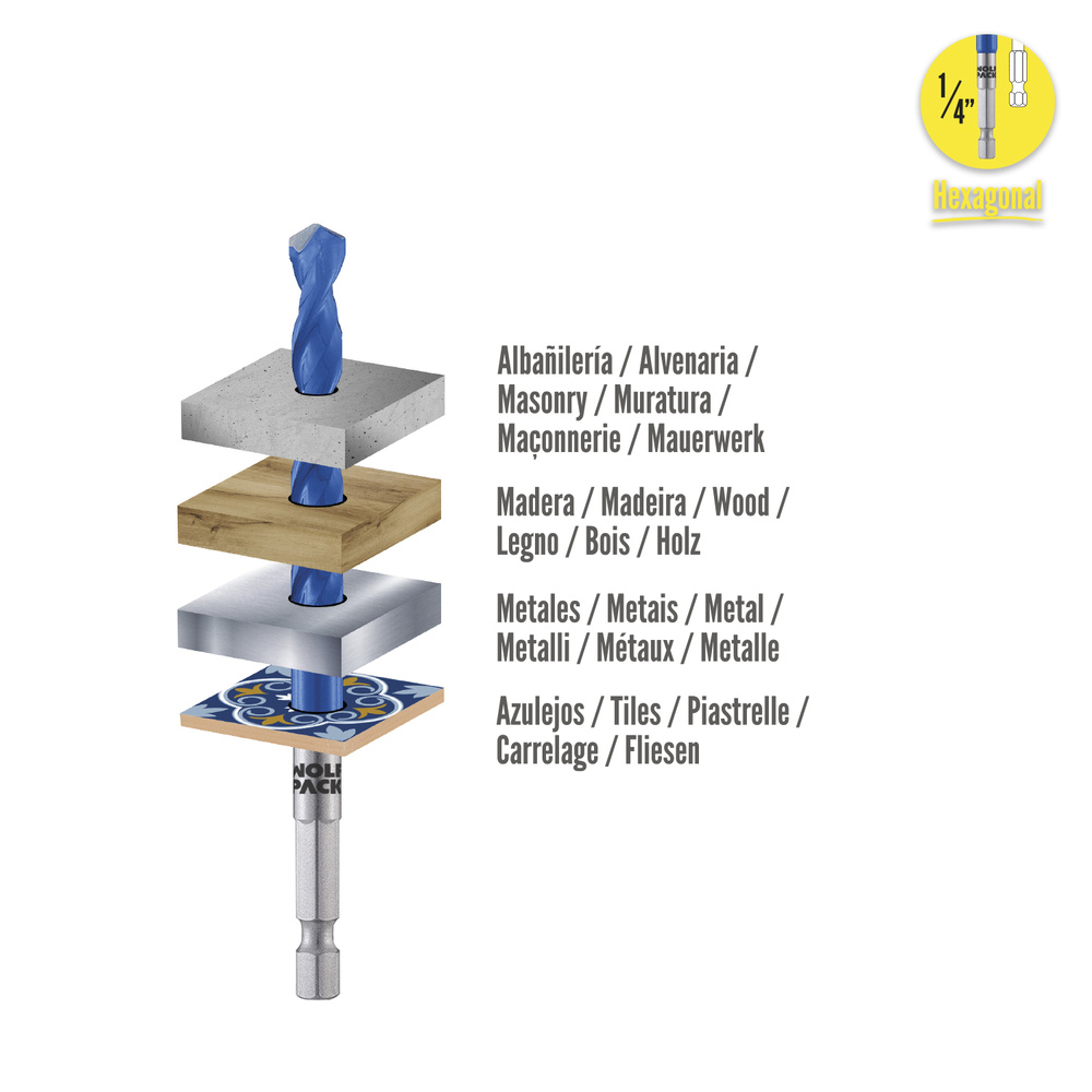 Estuche 5 Brocas Universal Hexagonal Ø 4 / 5 / 6 / 8 10 mm. Broca Azulejos, Cerámica, Mármol, Hormigón, Metal, Madera, Plástico