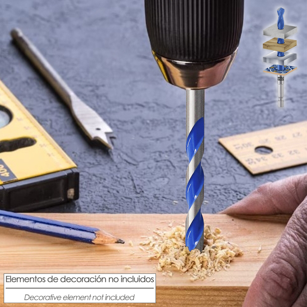 – Apta para la perforación de azulejos, cerámica, mármol, hormigón, metal, madera y plástico.