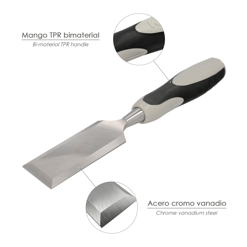– Hoja de acero al cromo vanadio (especial para maderas muy duras).