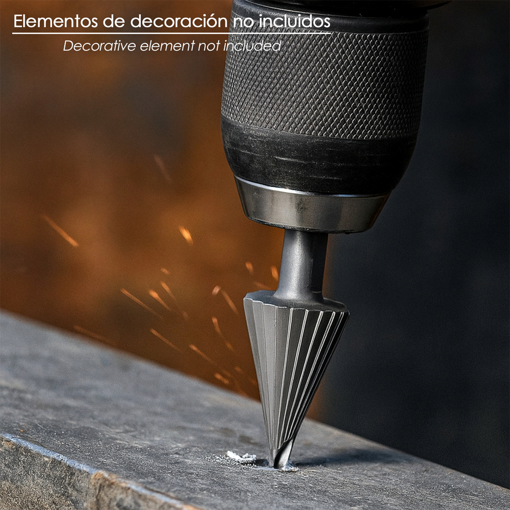 – Producto también conocido como: fresa cónica HSS, avellanador cónico, lima rotativa cónica, herramienta rotativa de cono o buril cónico rotativo.