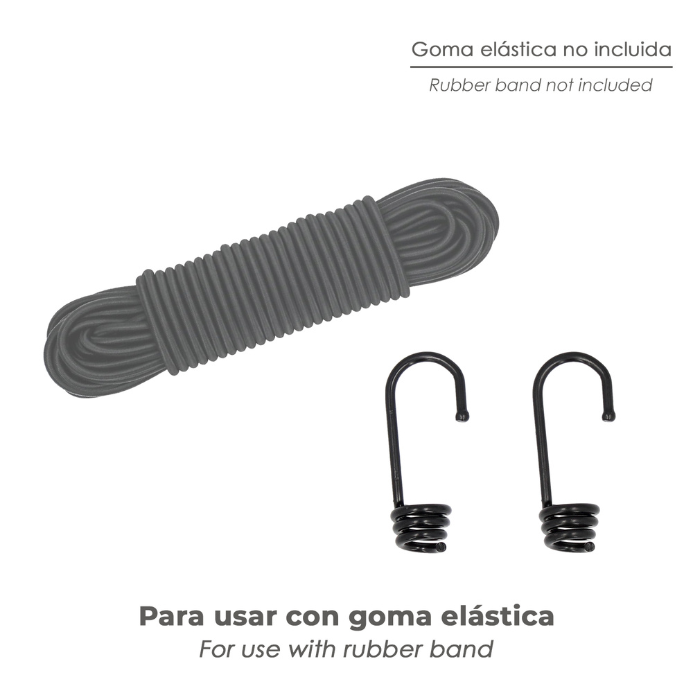 – ArtÃculo también conocido como gancho en espiral, gancho de acero, gancho para cuerda elástica, ganchos de elástico, fijaciones, etc.