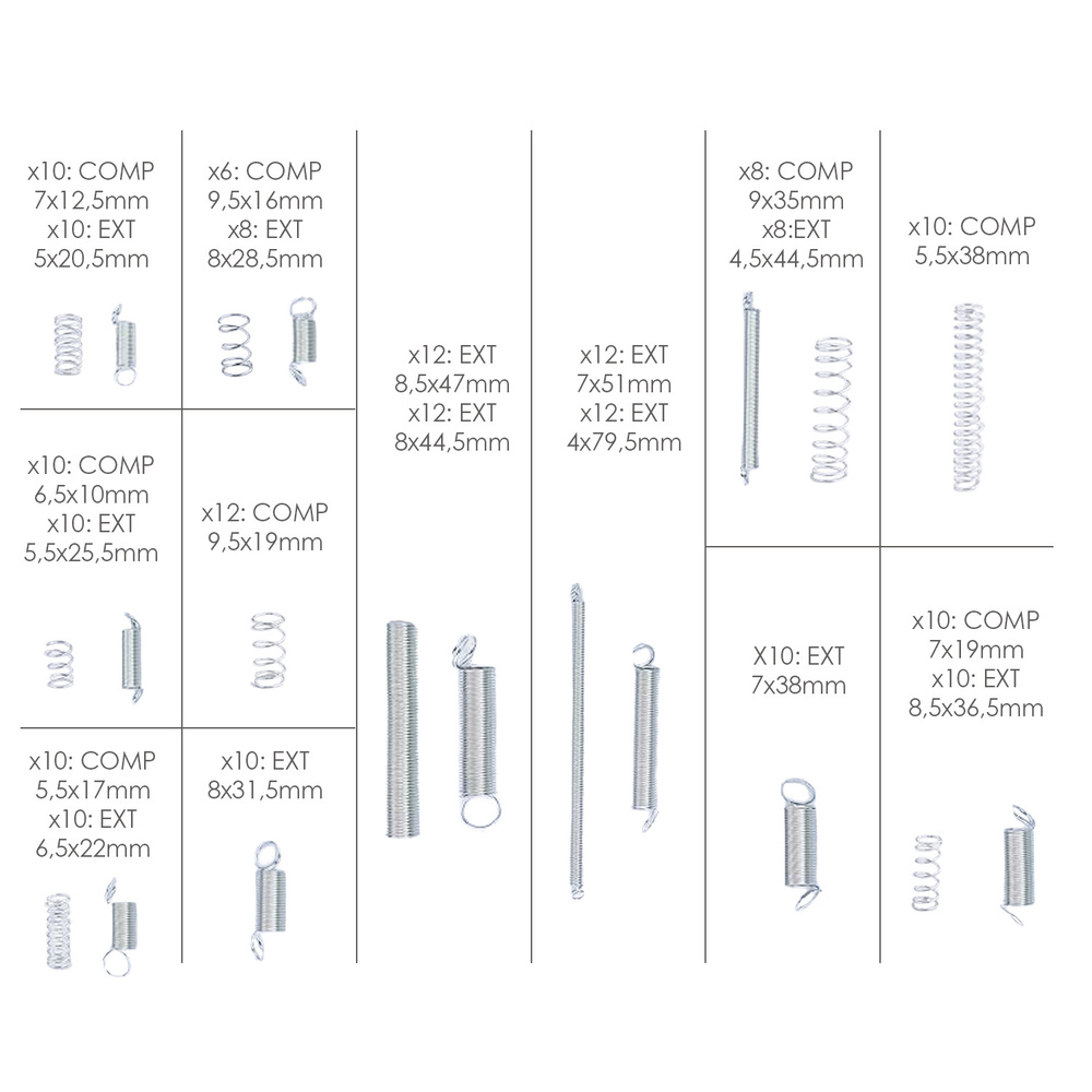 Kit Maletin 200 Muelles Compresión / Extensión Con Caja De Almacenamiento, Para Todo Tipo De Herramientas y Equipos