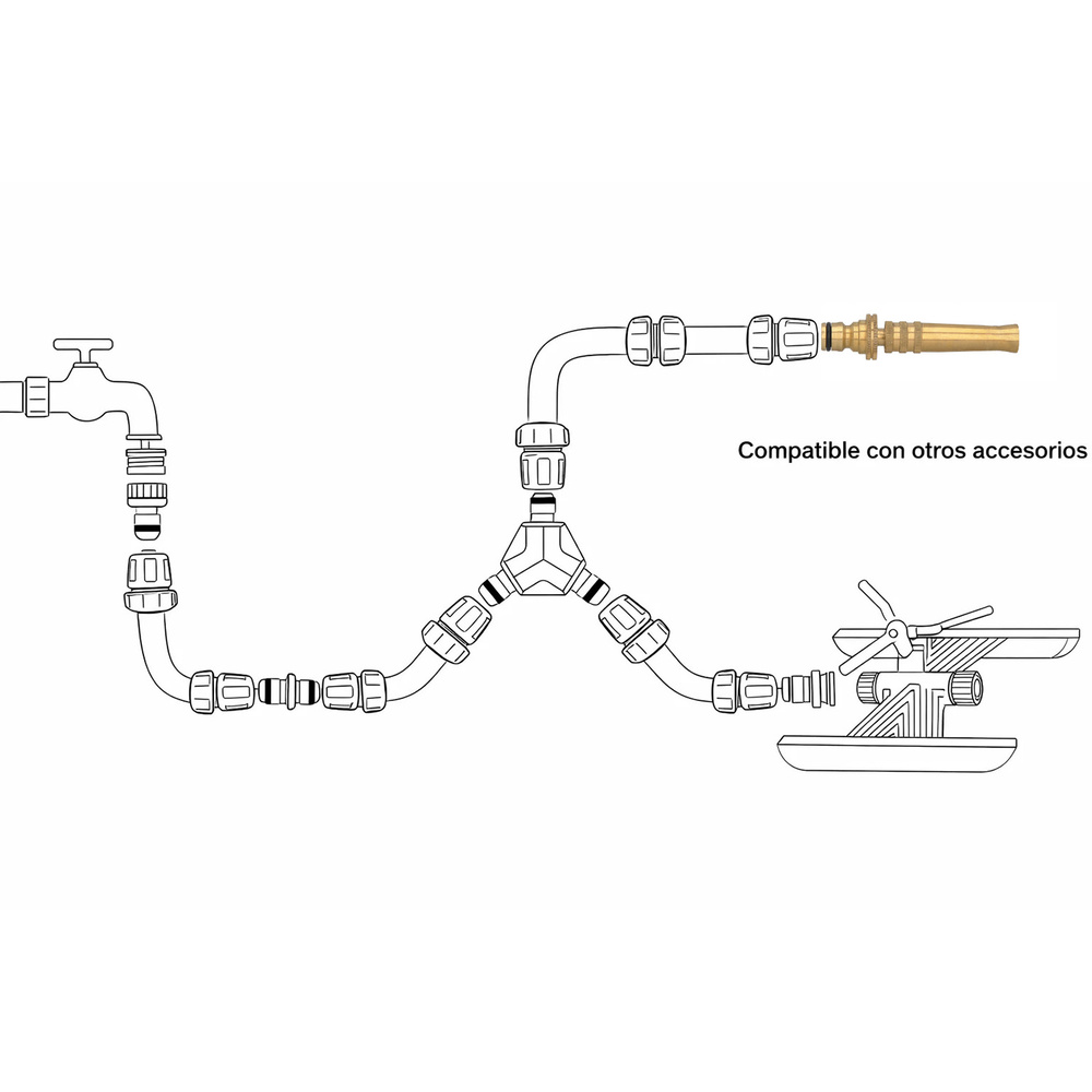 – Lanza riegos con enchufe rapido macho valido para mangueras con conectores hembra.