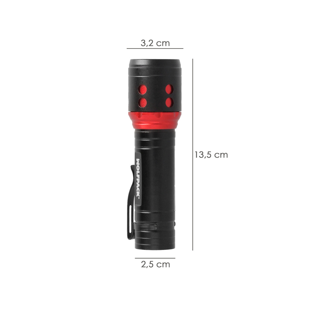 Linterna LED De Mano Mini Aluminio Recargable USB (1.200 mah) 500 Lumenes 5 Watt. Con Función Zoom y Clip Sujeción