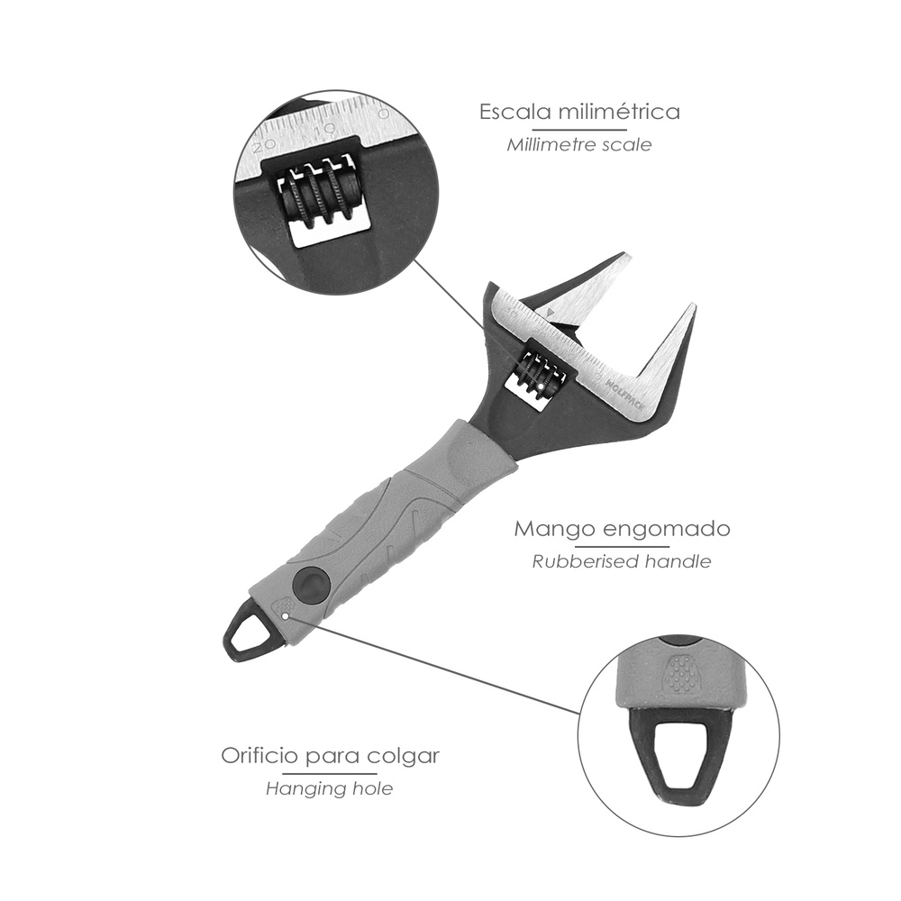 Llave Ajustable Gran Apertura Compact. Cromo Vanadio 6″ Llave Inglesa, Llave De Expansion, Llave Gran Apertura