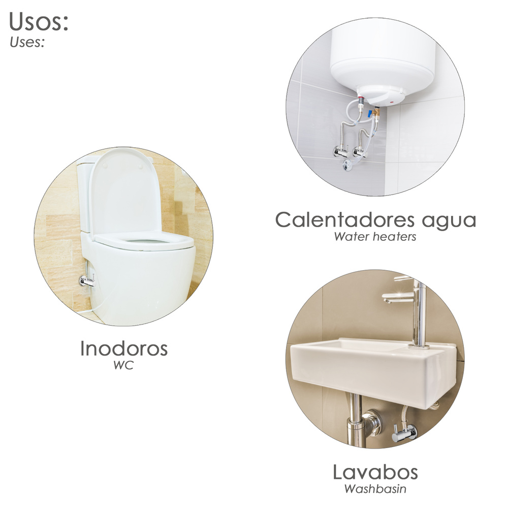 – Diseñada con un conector de pared de G1/2 pulgadas y un conector de salida/entrada de G1/2 pulgadas para facilitar su instalación.