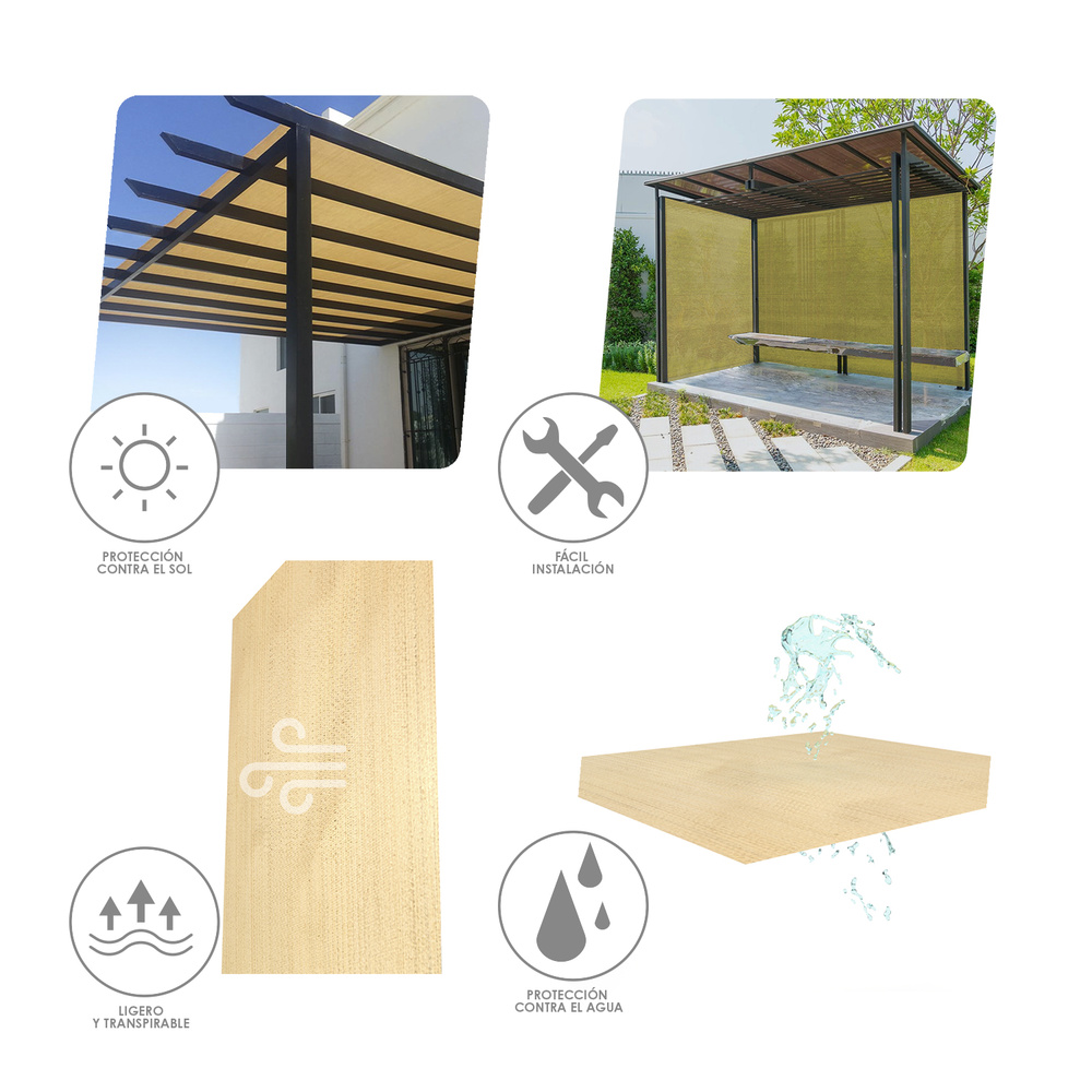 – Proteja del sol su jardÃn o terraza y consiga una temperatura mas agradable. Reduce la radiación.