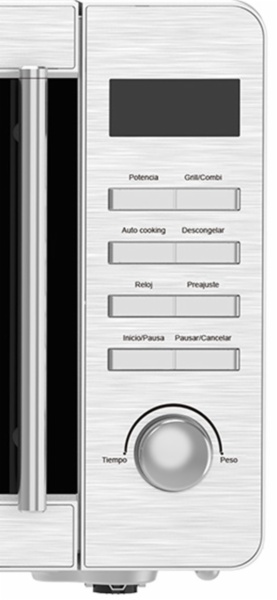 - Estética inox con puerta inox y abertura con tirador. cavidad esmaltada en gris con iluminación led y plato giratorio de cristal. sistema de control eléctronico con display led y temporizador digital. ofrece 5 niveles de potencia, grill y distintas funciones para obtener el mayor rendimiento y facilitar el proceso de cocción.