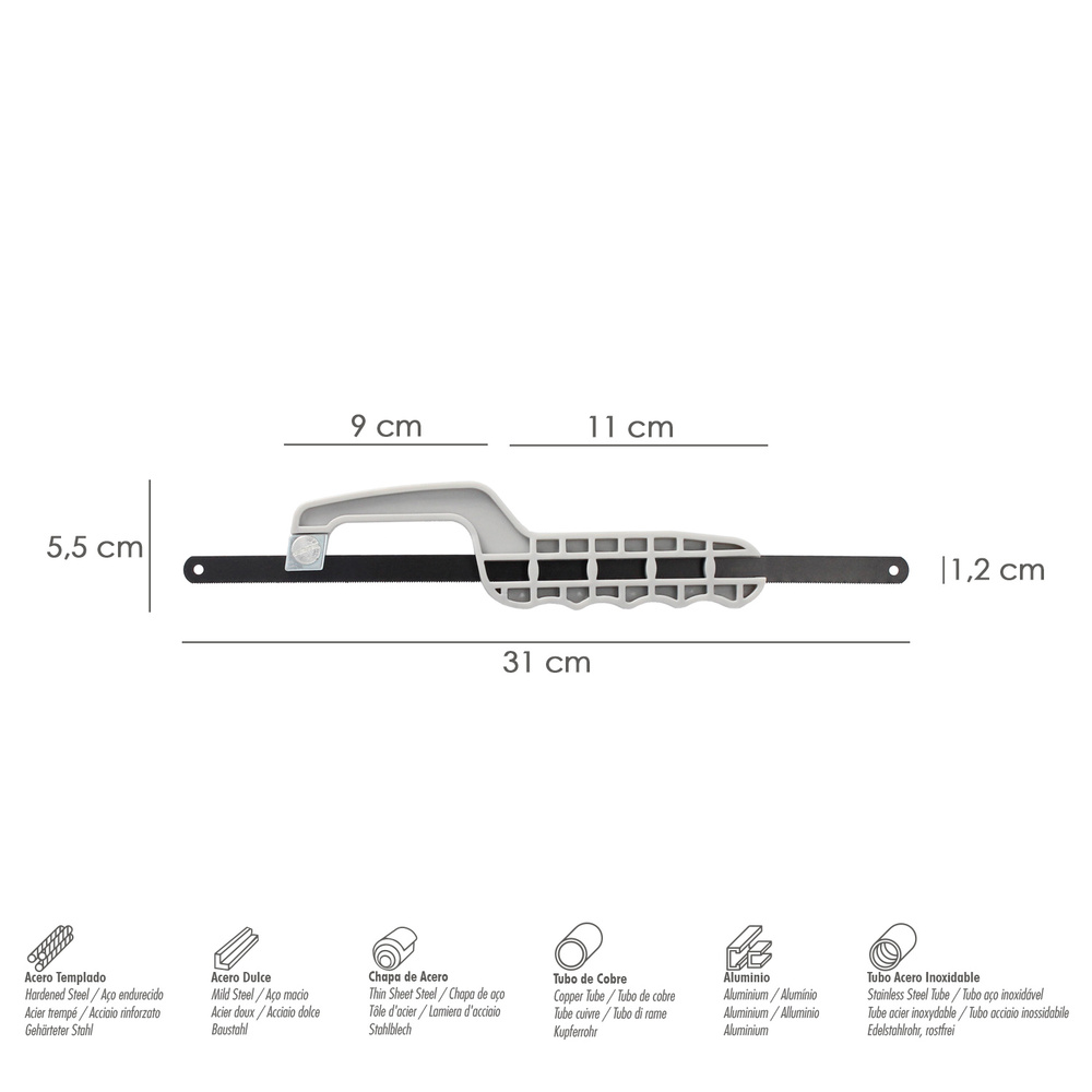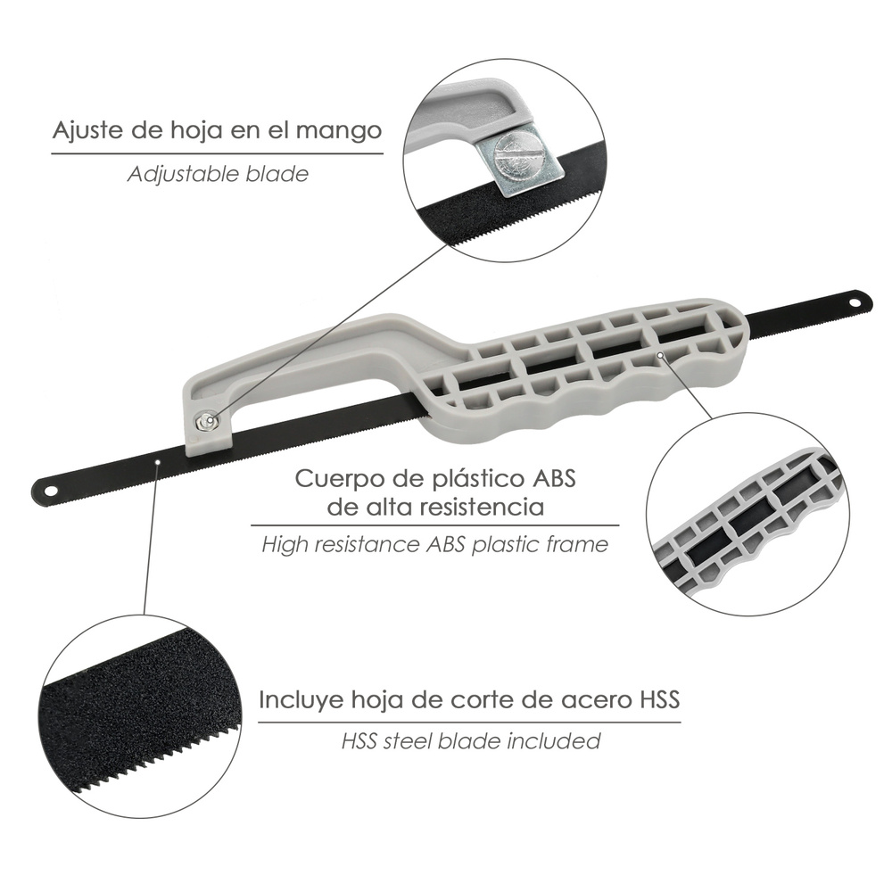 Mini Sierra Empuñadura Plastico Con Hoja 300 mm. Ajustable, Hoja Corte HSS, Serrucho, Segueta, Segueta, Mini Arco Sierra