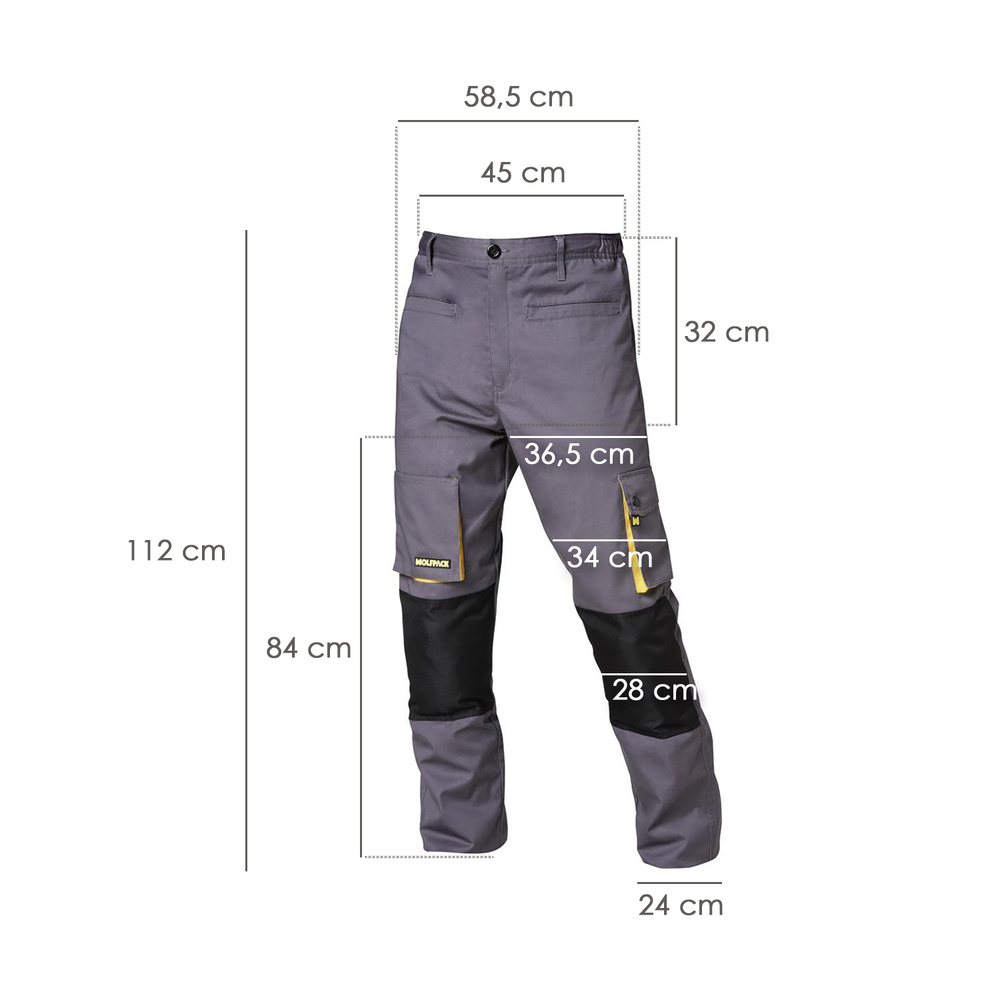 Pantalon de Trabajo Gris/Amarillo Largo Talla 50/52 XL