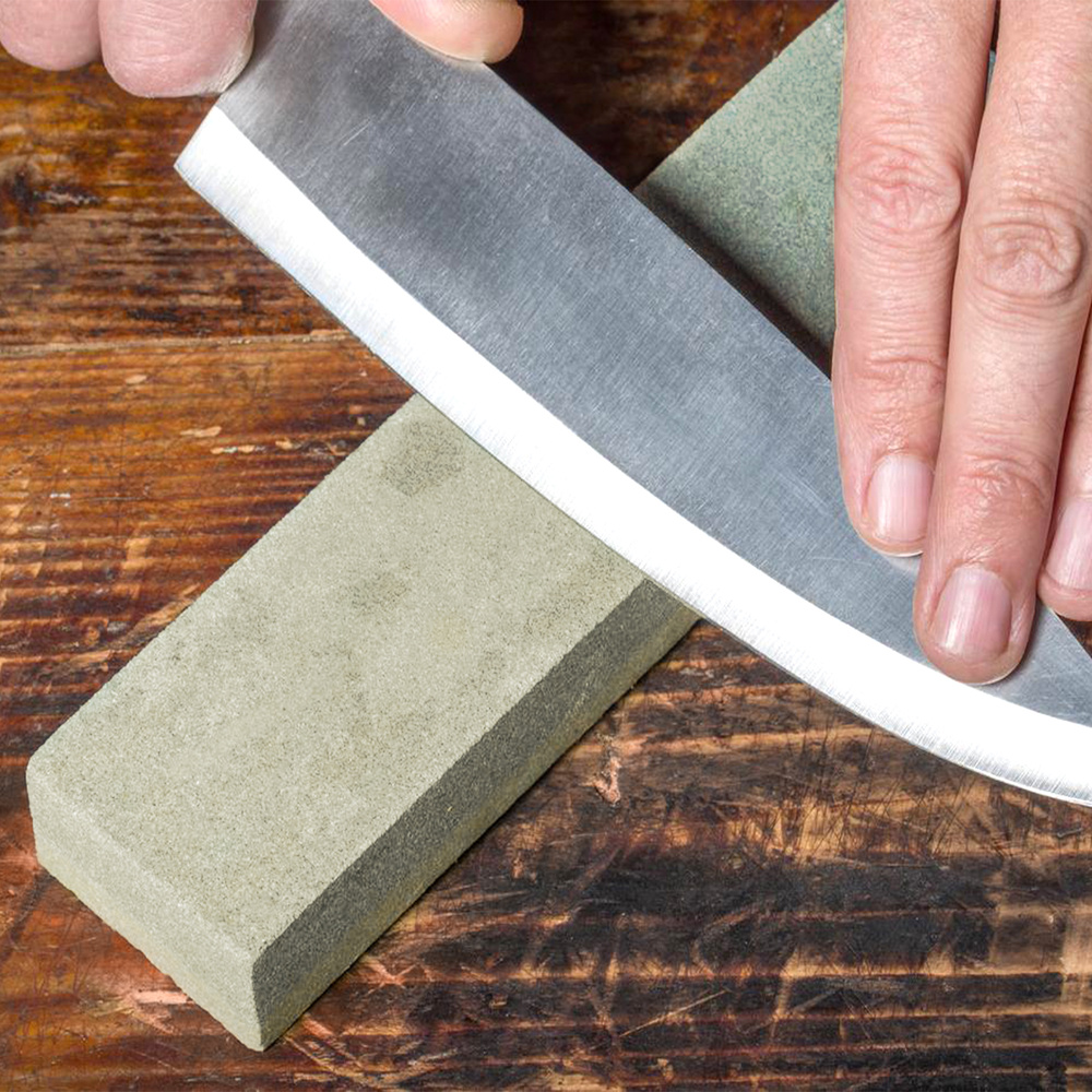 – Modo de uso: Una vez que hemos afilado la herramienta de corte en la muela de esmeril gruesa, o fina, hay que asentar el filo, es decir, eliminar los minúsculos arañazos que el esmeril deja en el filo con la piedra de sentar filos.