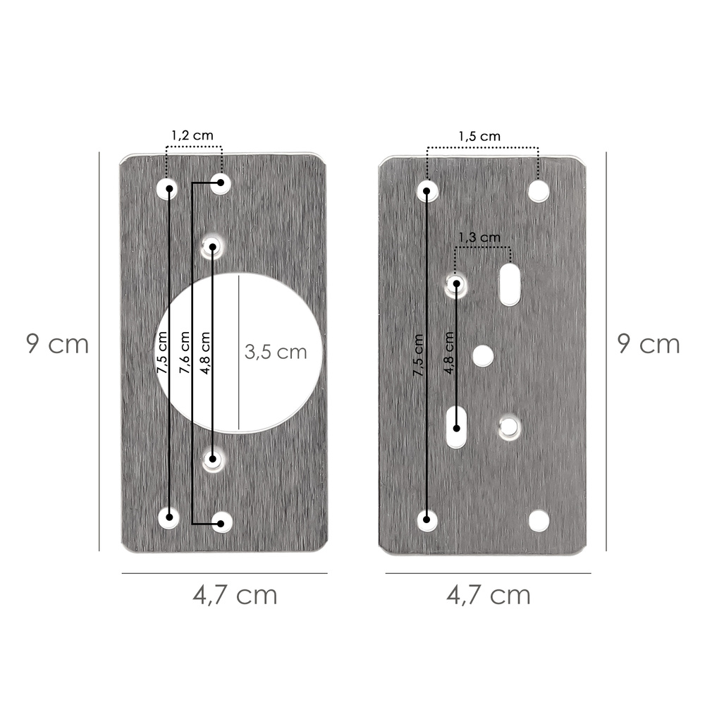 Placas de Reparacion Bisagras Cazoleta 4,7×9 cm. 2 piezas. Placa Repara Puertas, Placa Reparación Bisagras Mueble