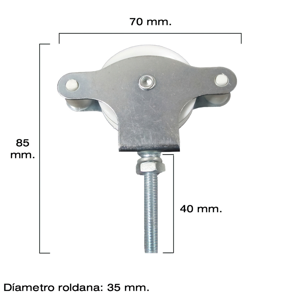 Polea Tendedero Wolfpack Zincado 40 mm. Roldana Plástico con Tornillo