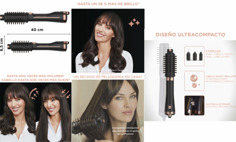 - El cepillo secador de aire caliente ultimate experience de rowenta es una compacta herramienta de peinado 2 en 1 que te permite conseguir resultados de peluquerìa desde la comodidad de tu hogar.