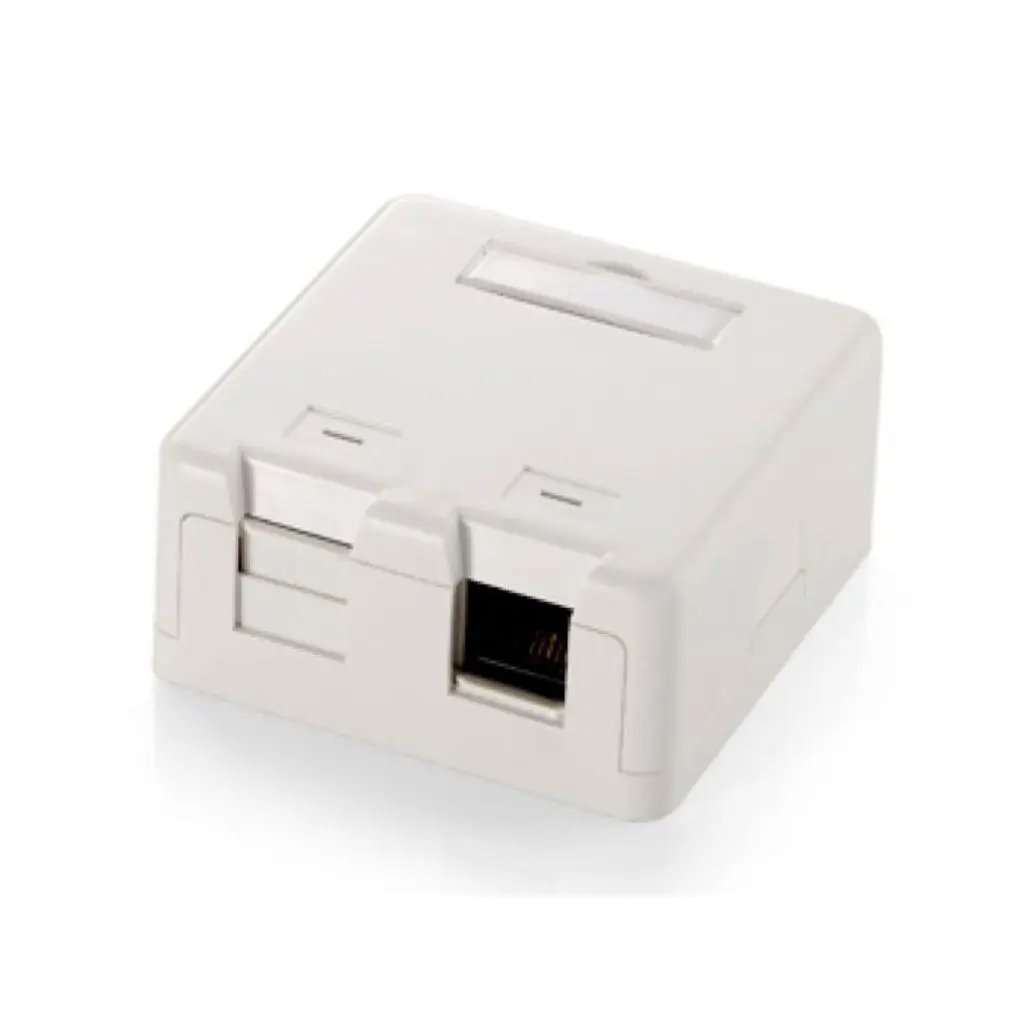 - La caja Keystone montada en superficie equip® con 2 conectores Keystone admite dos conexiones Ethernet.