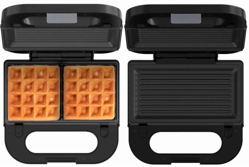 • 3 placas intercambiables: gofre, grill y sandwich triangular