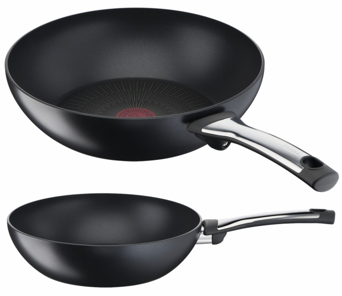 - Tefal excellence wok de 28 cm, revestimiento antiadherente, antirrayaduras, apto para todo tipo de cocinas, fácil de limpar, thermo signal, cocina sana, recetas asiáticas, fabricado en francia, g2691932