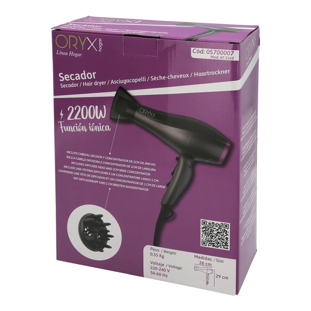 – Función iónica: para un secado libre de encrespamiento, cuidando su cabello.