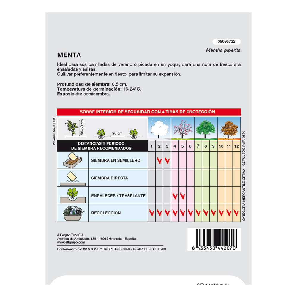 – Temperatura de germinación: 16-24 ºc.