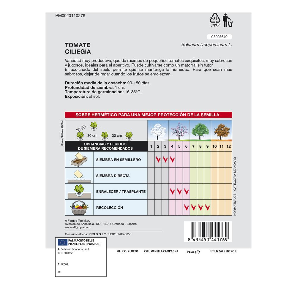 – Temperatura de germinación: 16-35 ºc.