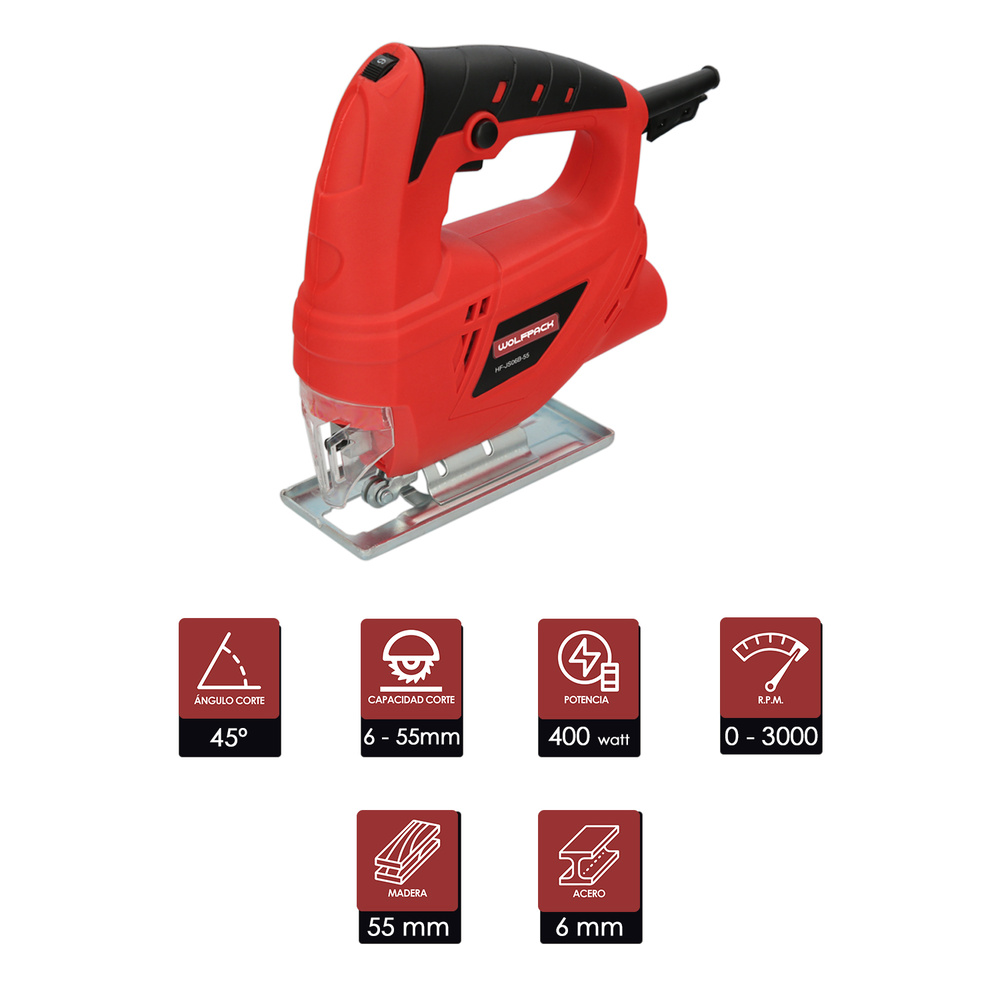 Sierra Vaiven 400 Watt. Sierra de Calar, Profundidad Corte 55 mm. Madera. Inclinable